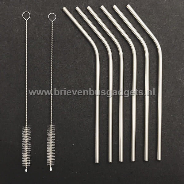 In de rietjes zit een speels bochtje en ze zijn keer op keer te gebruiken, want om het goed schoon te houden, worden er 2 borsteltjes bij geleverd.